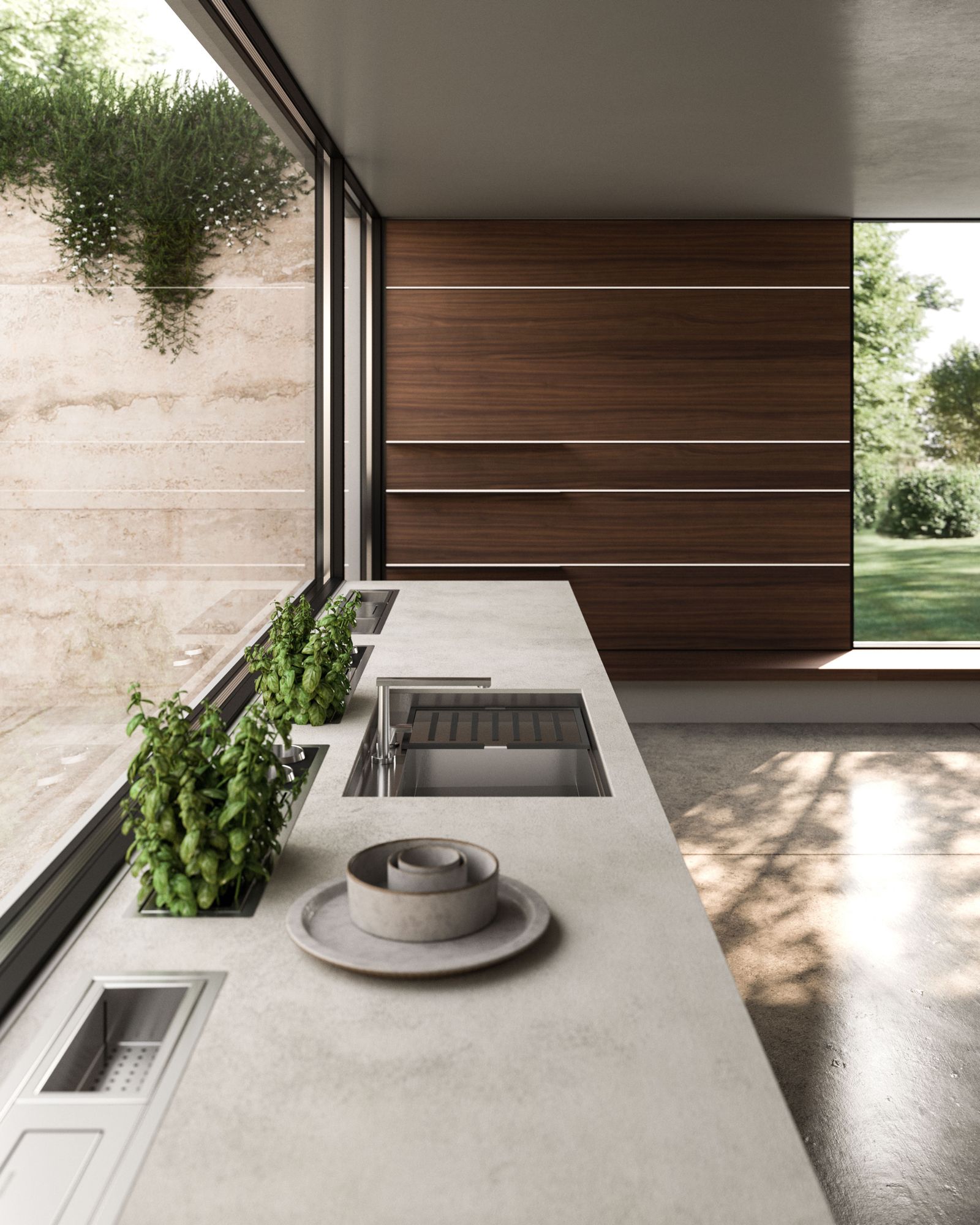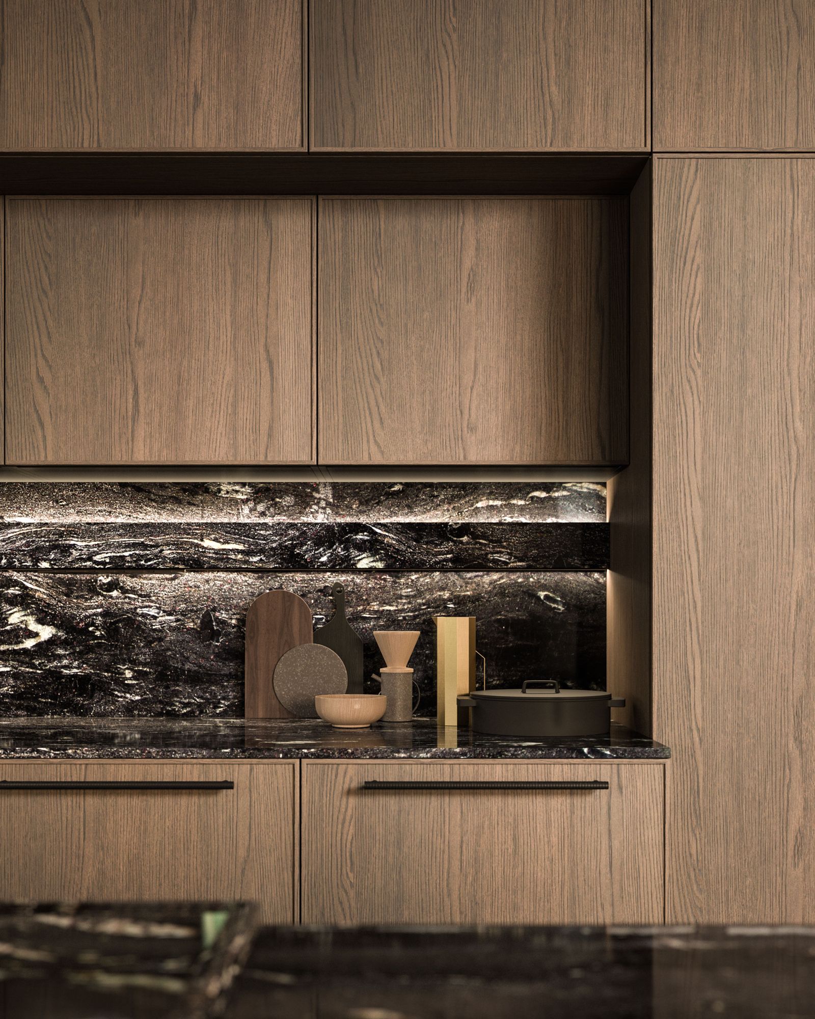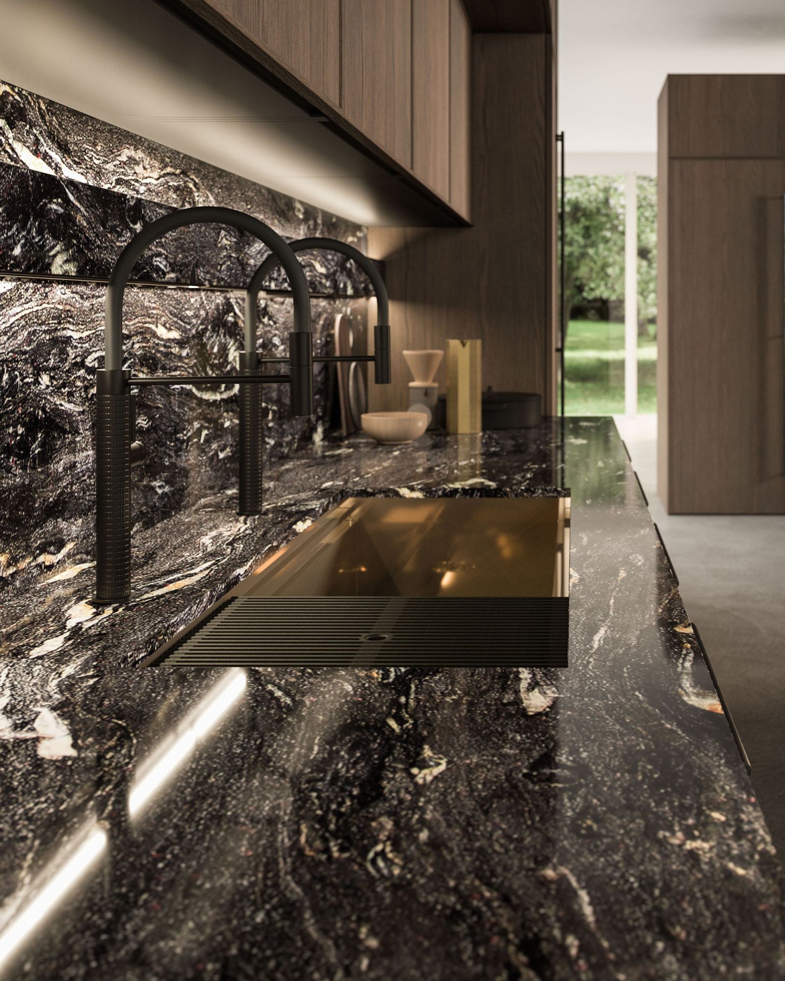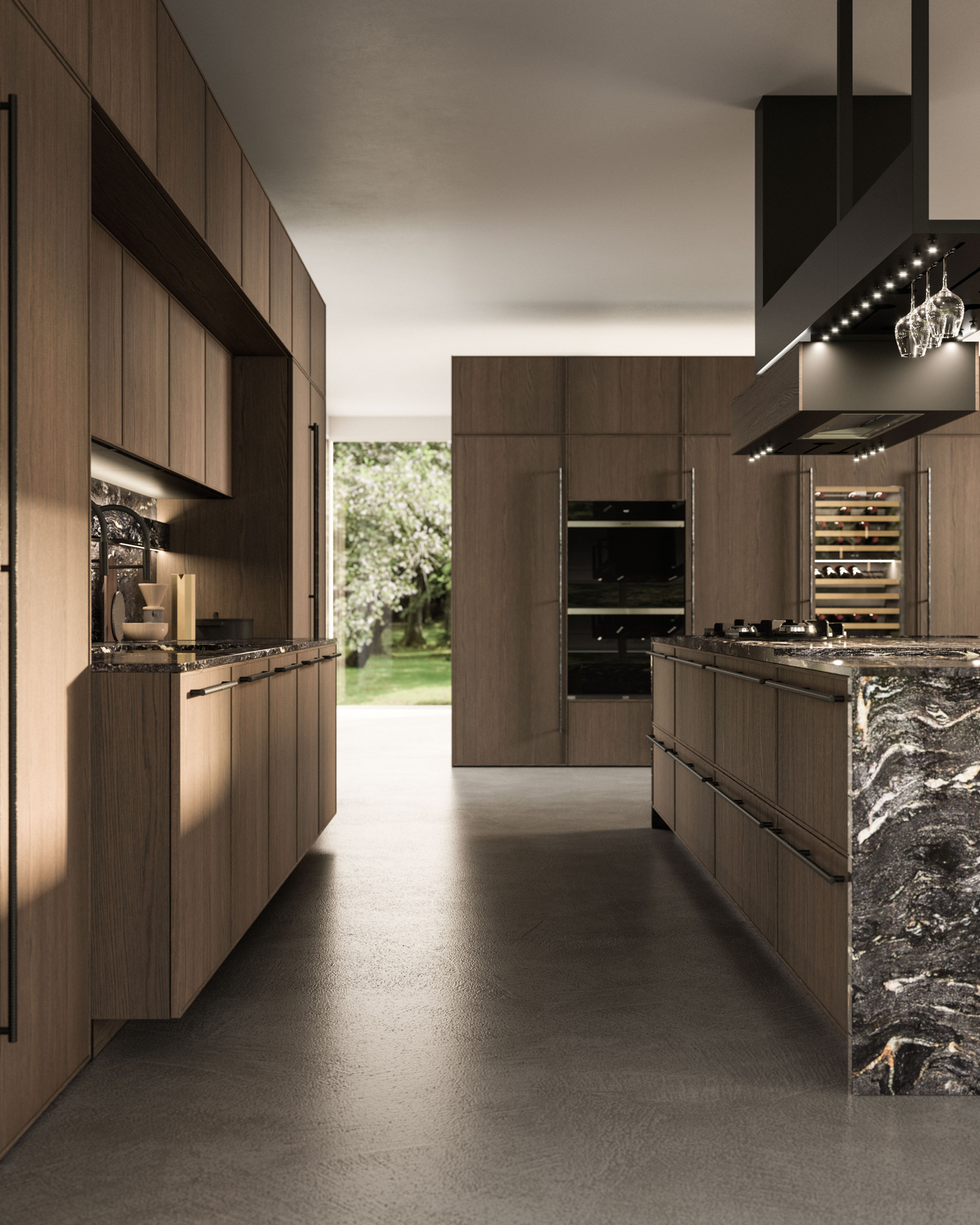 The Quadra Kitchen’s frame geometry is enhanced by broad adaptability and distinctive matching accessories.