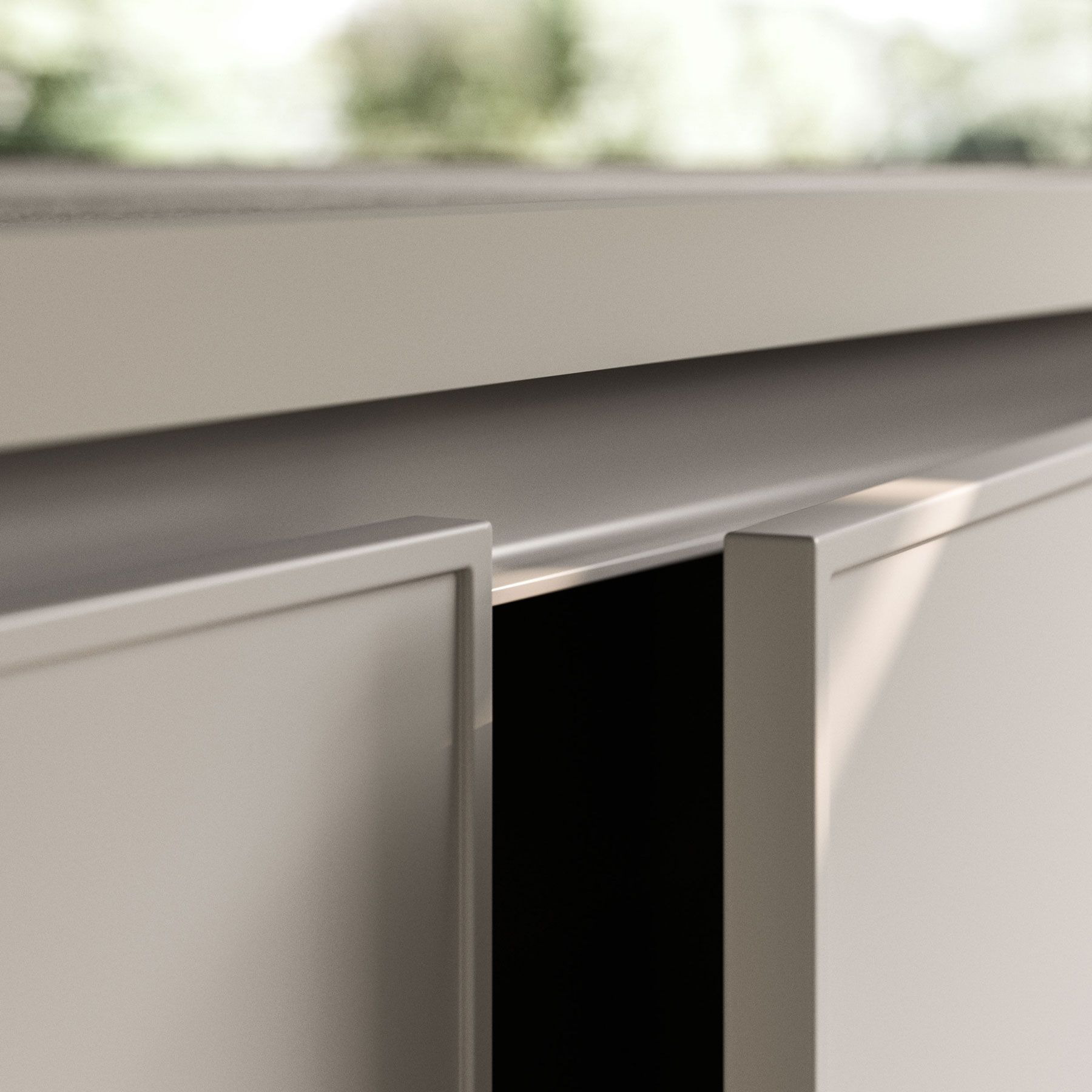 The handle-free Quadra design accentuates spaces with its sleek, unbroken geometric lines.